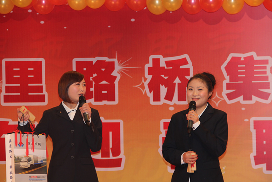 晚会上万里路桥人齐聚一堂,主持人任敬敬和杜鹃,光彩夺目,表现出色,与观众有效地进行互动,晚会的气氛活跃融洽。